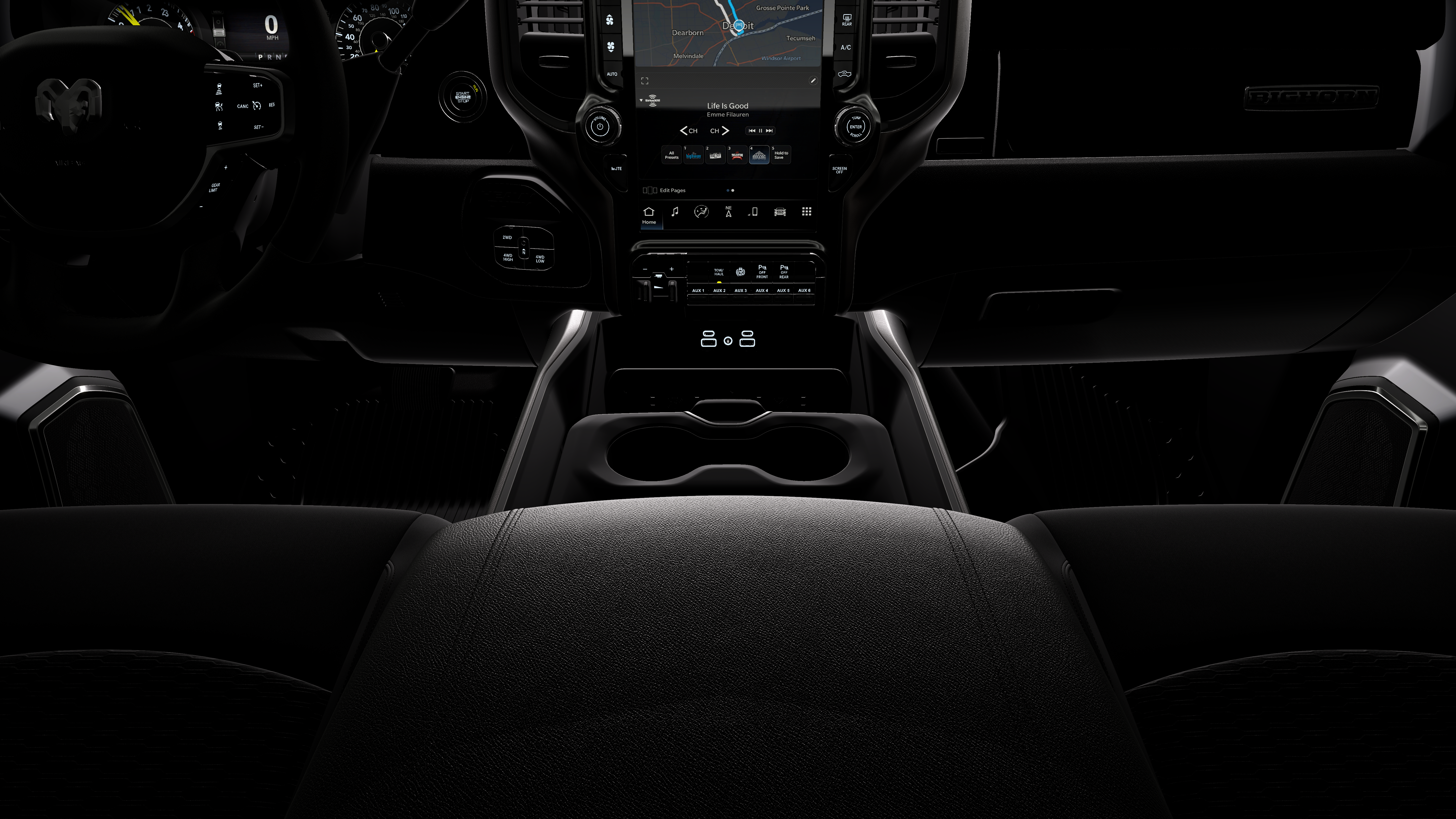 - Radio w/Seek-Scan, Clock, Speed Compensated Volume Control, Aux Audio Input Jack, Voice Activation, Radio Data System and Uconnect External Memory Control
