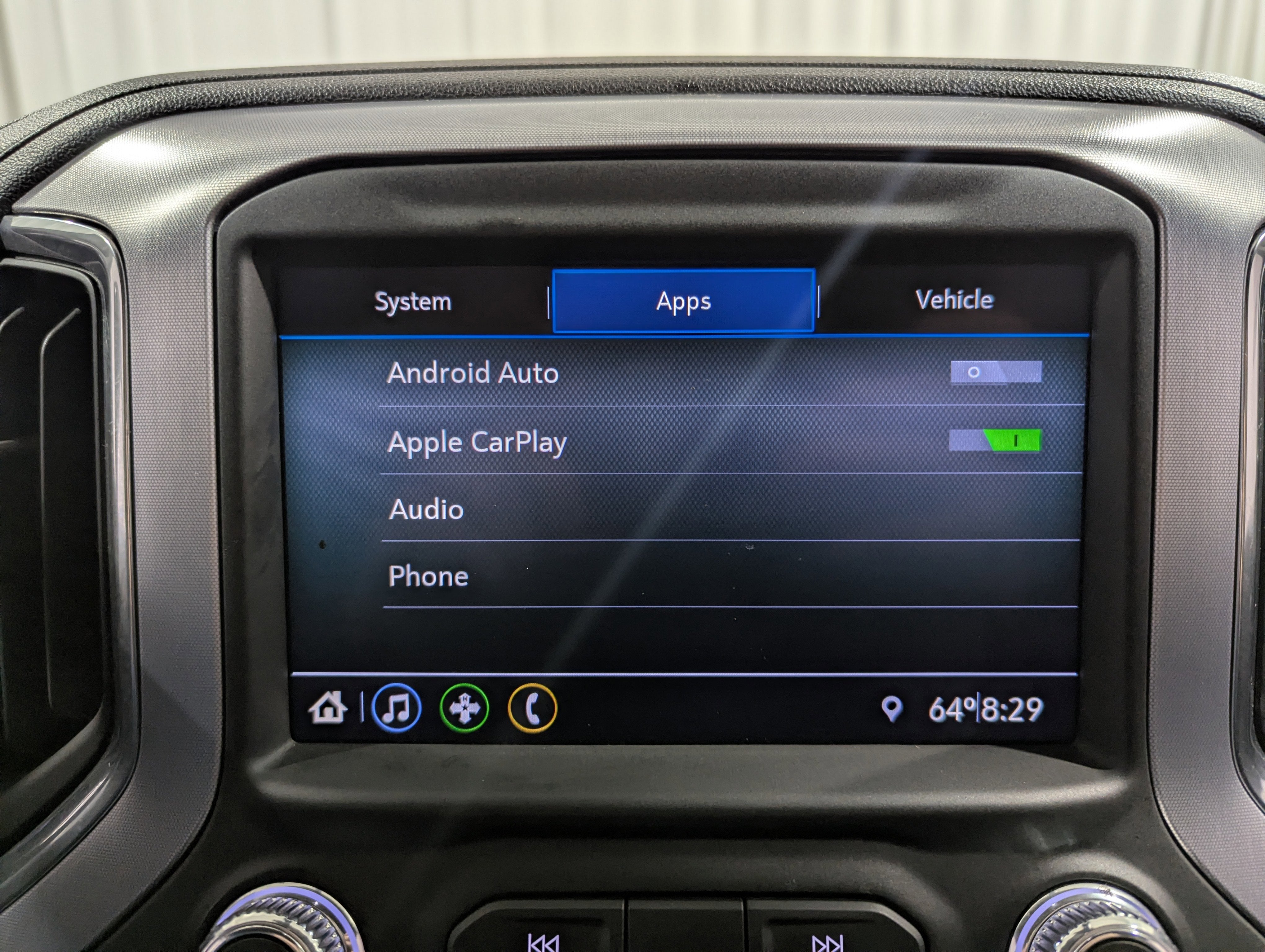 - Audio system, GMC Infotainment System with 8" diagonal color touch-screen, AM/FM stereo with seek-and-scan and digital clock, includes Bluetooth® streaming audio for music and select phones; featuring Android Auto and Apple CarPlay capability for compatible phones